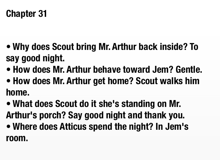 • Why does Scout bring Mr. Arthur back inside? To say good night.