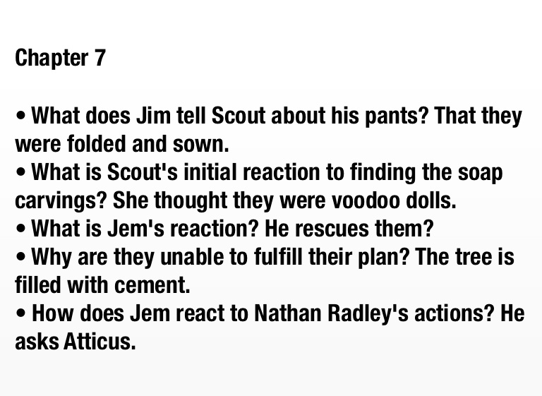 • What does Jim tell Scout about his pants? That they were folded and sown.