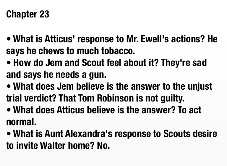 • What is Atticus' response to Mr. Ewell's actions? He says he chews to much tobacco.