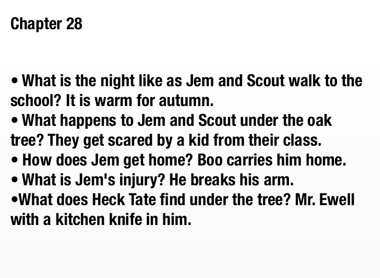 •What does Heck Tate find under the tree? Mr. Ewell with a kitchen knife in him.