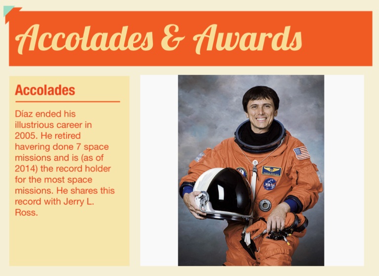 Díaz ended his illustrious career in 2005. He retired havering done 7 space missions and is (as of 2014) the record holder for the most space missions. He shares this record with Jerry L. Ross.