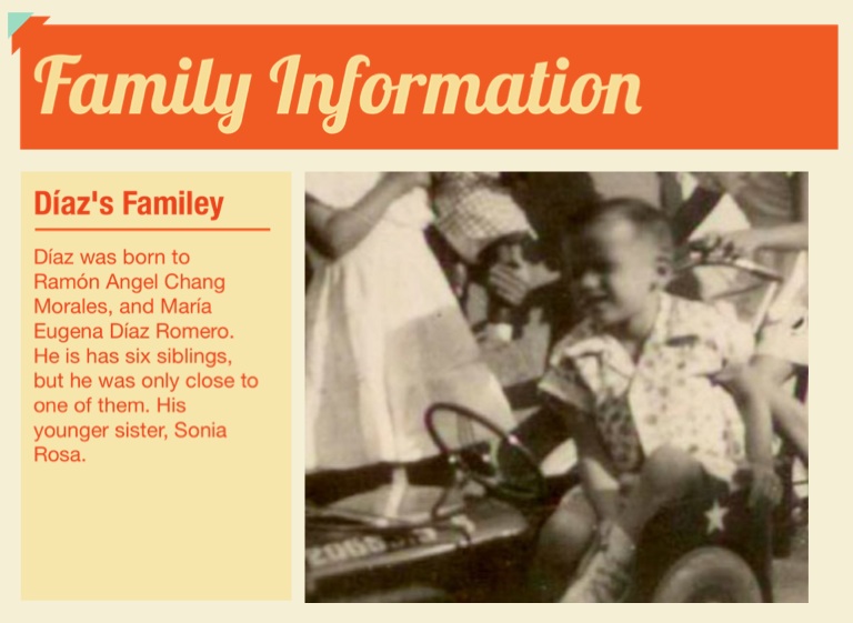 Díaz was born to Ramón Angel Chang Morales, and María Eugena Díaz Romero. He is has six siblings, but he was only close to one of them. His younger sister, Sonia Rosa.