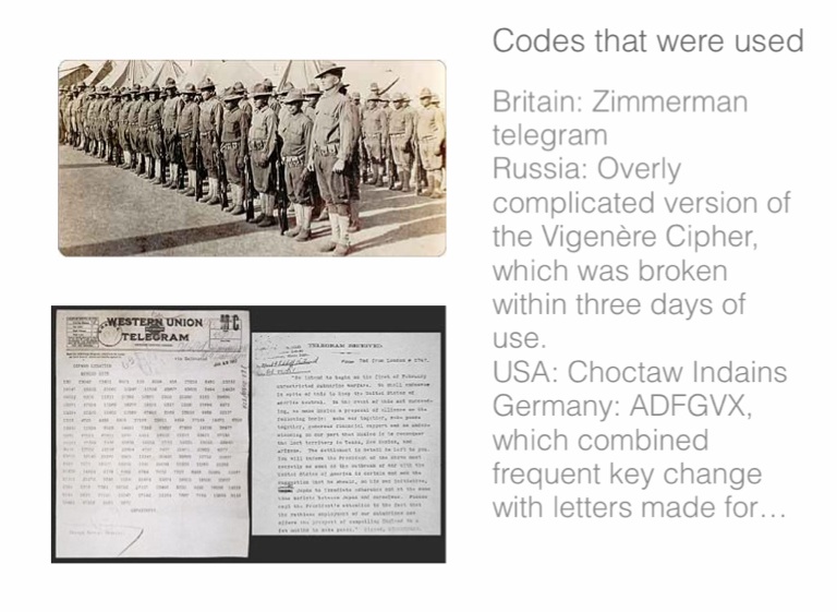 Germany: ADFGVX, which combined frequent key change with letters made for Mores code.