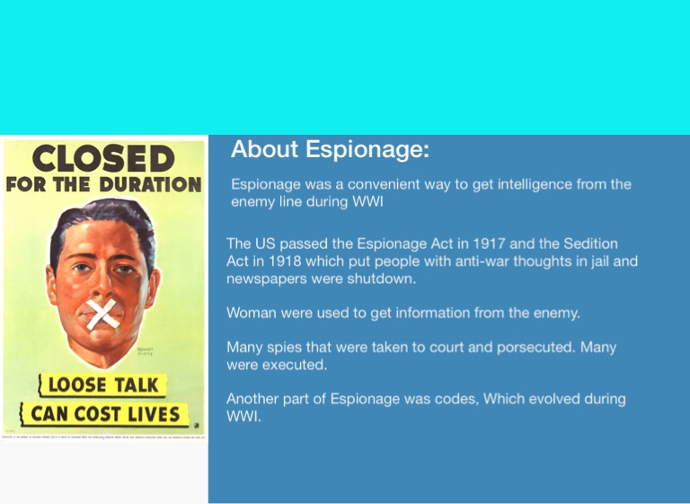 Another part of Espionage was codes, Which evolved during WWI.