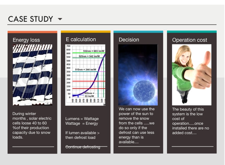 We can now use the power of the sun to remove the snow from the cells .....we do so only if the defrost can use less energy than is available....