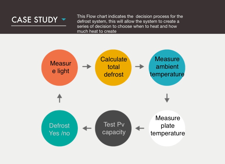 This Flow chart indicates the decision process for the defrost system, this will allow the system to create a series of decision to choose when to heat and how much heat to create