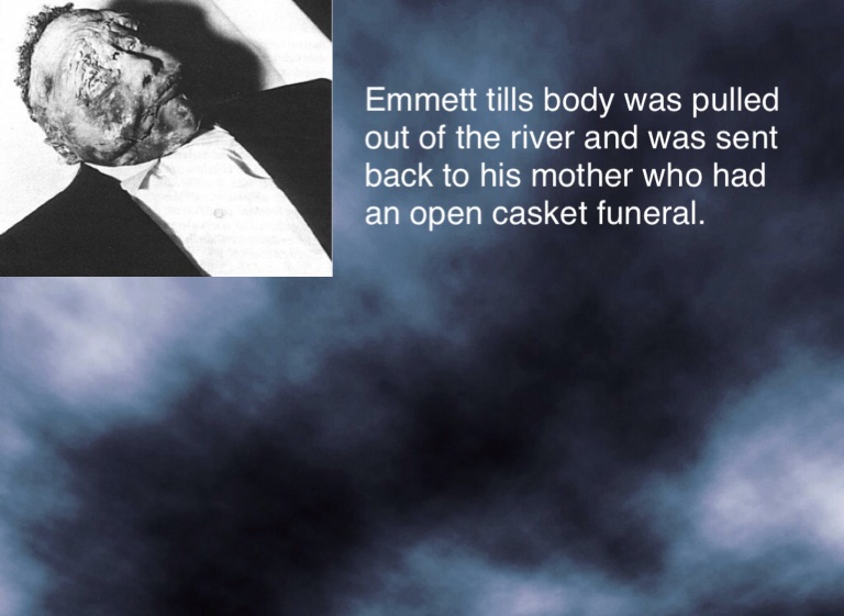 Emmett tills body was pulled out of the river and was sent back to his mother who had an open casket funeral.