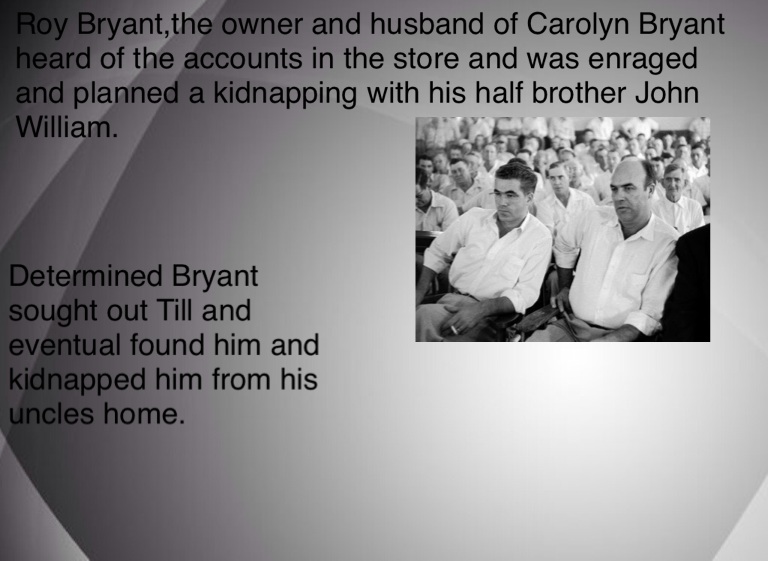 Determined Bryant sought out Till and eventual found him and kidnapped him from his uncles home.