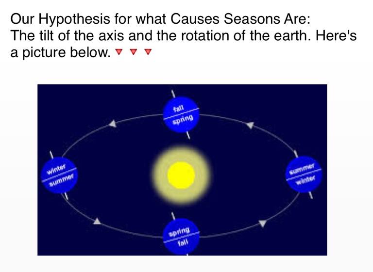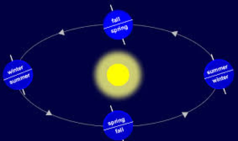 The tilt of the axis and the rotation of the earth. Here's a picture below.🔻🔻🔻