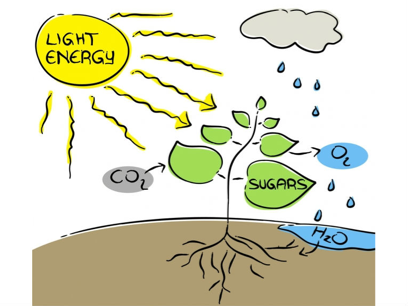 During photosynthesis, cells capture energy from sunlight and use it to change carbon dioxide gas and water into oxygen and sugars, such as glucose.
