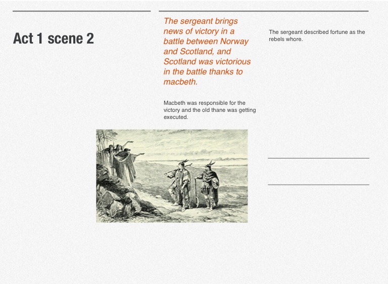 The sergeant brings news of victory in a battle between Norway and Scotland, and Scotland was victorious in the battle thanks to macbeth.
