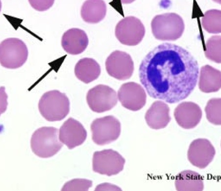 These cells are irregularly small (6.5mm), a pink spherical shape, and lack a central pallor.