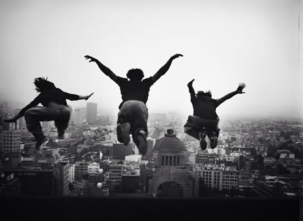 These kids leap out and where they will land is unknown, creating a suspended feeling of motion.