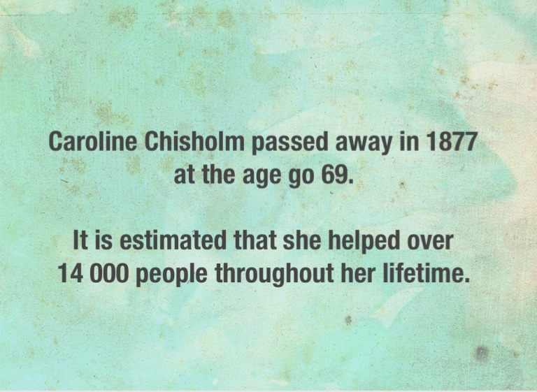 Caroline Chisholm passed away in 1877 at the age go 69.