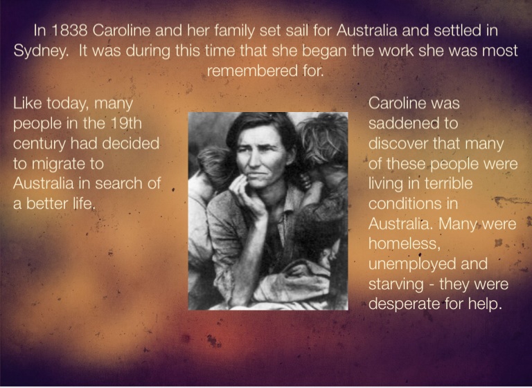 In 1838 Caroline and her family set sail for Australia and settled in Sydney. It was during this time that she began the work she was most remembered for.