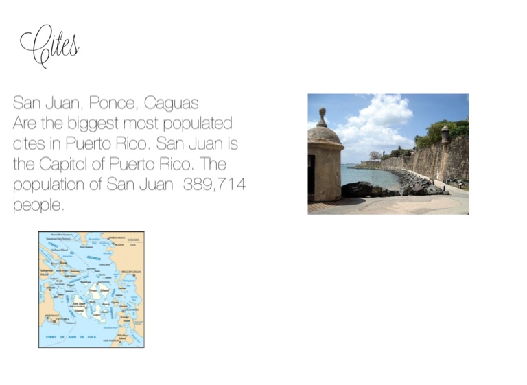 Are the biggest most populated cites in Puerto Rico. San Juan is the Capitol of Puerto Rico. The population of San Juan 389,714 people.