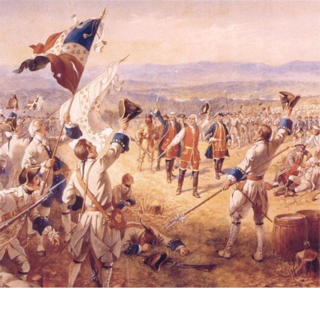 War (Seven Years' War) begins between the French and the British. The conflict began over the Ohio River Valley. The Huron Indians sided with the French, and the Iroquois sided with the British.
