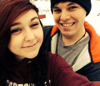 El tiene cabello castaƱo claro y ojos verdes.