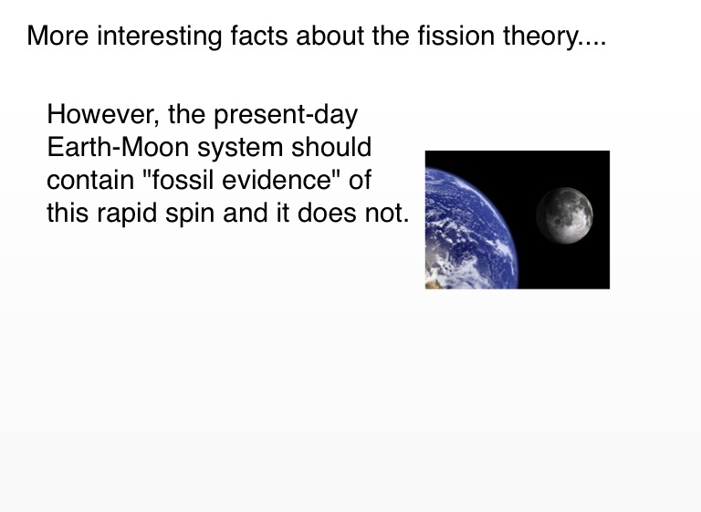 However, the present-day Earth-Moon system should contain "fossil evidence" of this rapid spin and it does not.