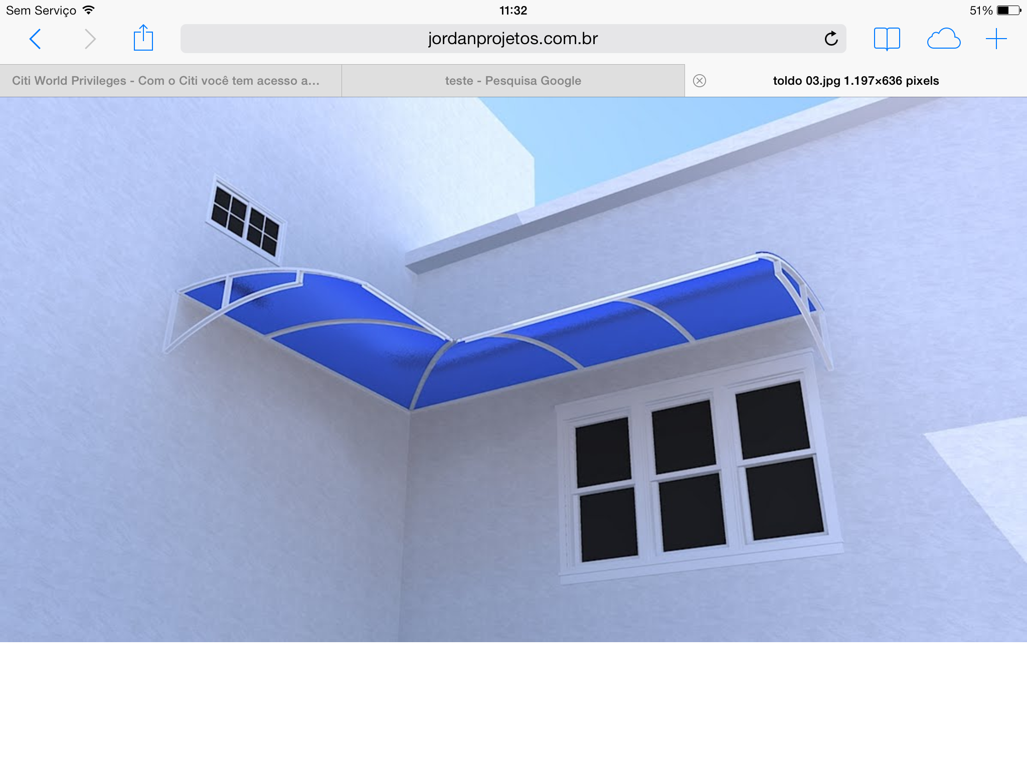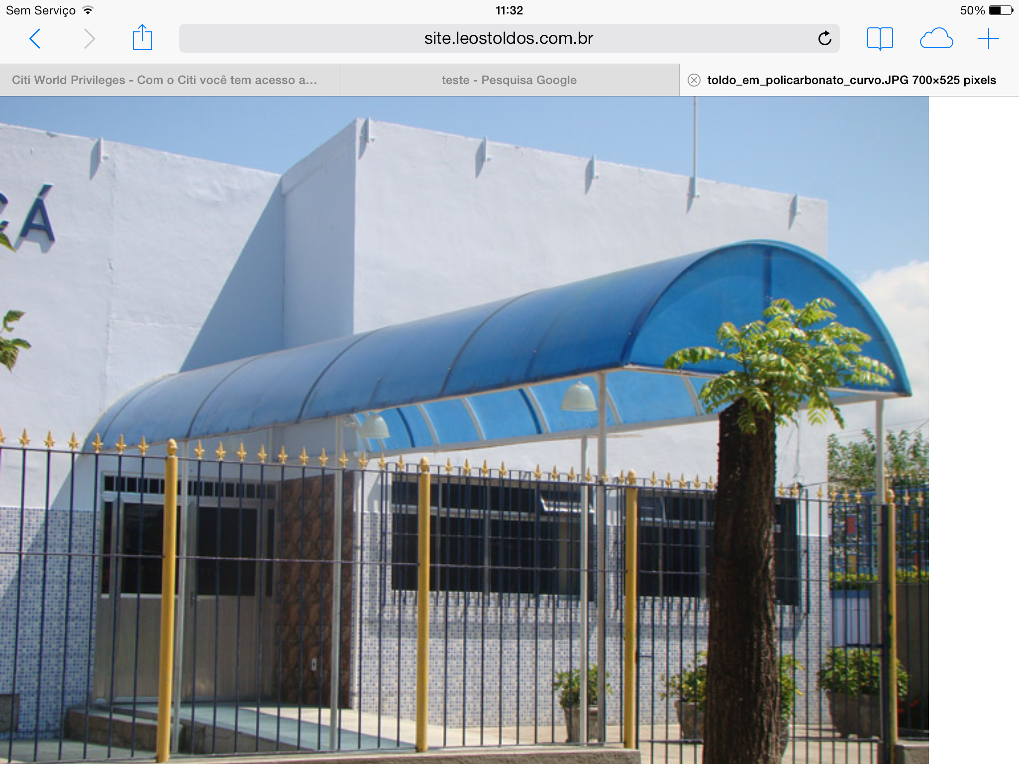 Toldo em policarbonato, estrutura em metalon galvanizado.