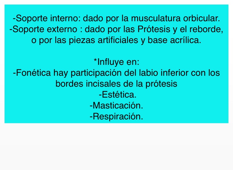 -Fonética hay participación del labio inferior con los bordes incisales de la prótesis