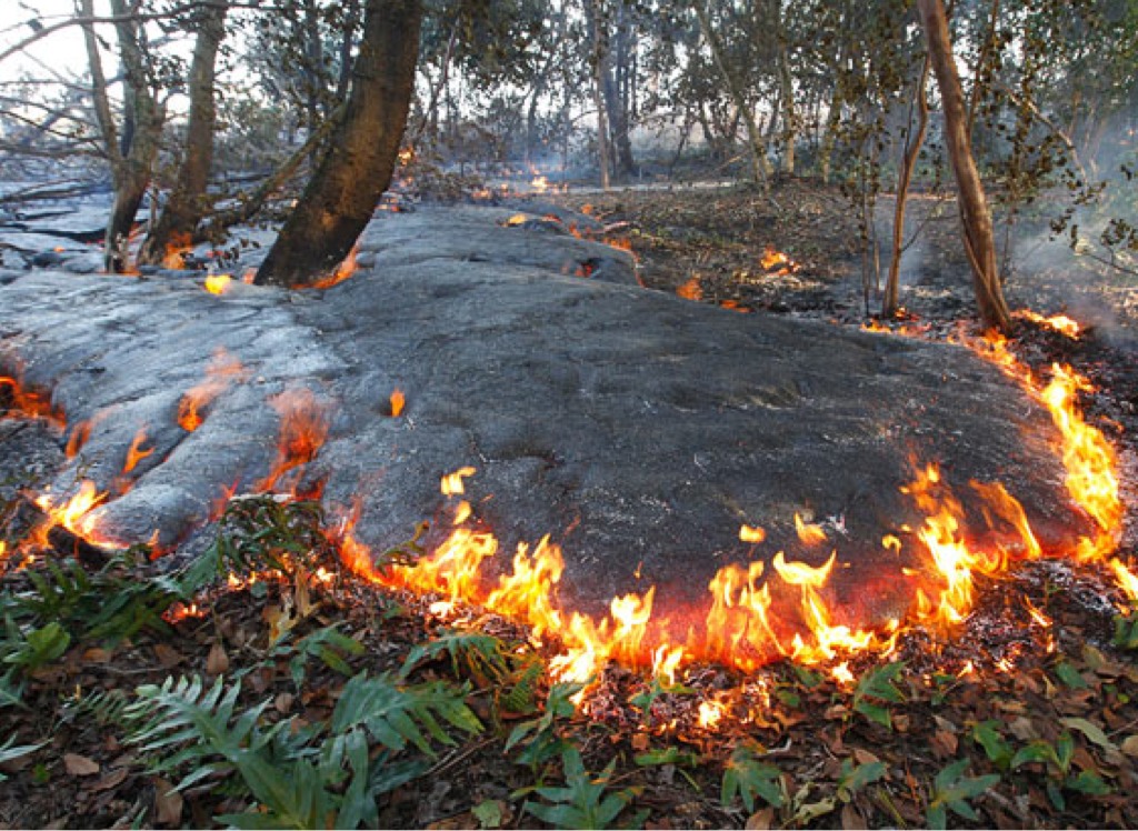 2. The lava coming out destroys trees and animals causing the habitats to be destroyed.a