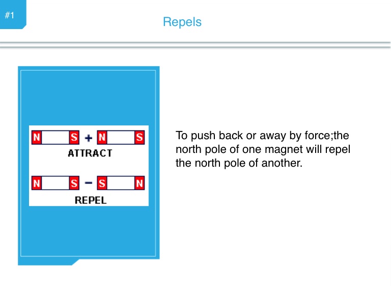 To push back or away by force;the north pole of one magnet will repel the north pole of another.