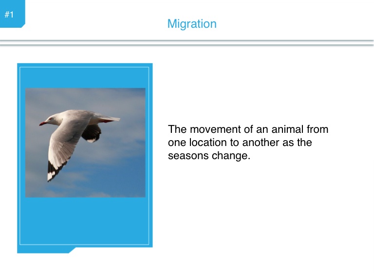 The movement of an animal from one location to another as the seasons change.
