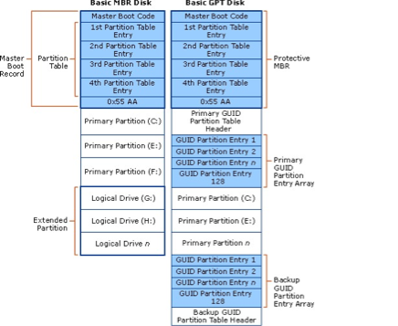 Bij MBR wordt een bootrecord in de eerste sector van de harde schijf geplaatst. Hierin zit de partitietabel en informatie over het opstartproces. Bij beschadiging start de schijf niet meer op. Wil je meer dan 4 partities, dan moet je gebruik maken van een uitgebreide partitie met daarin logische partities.