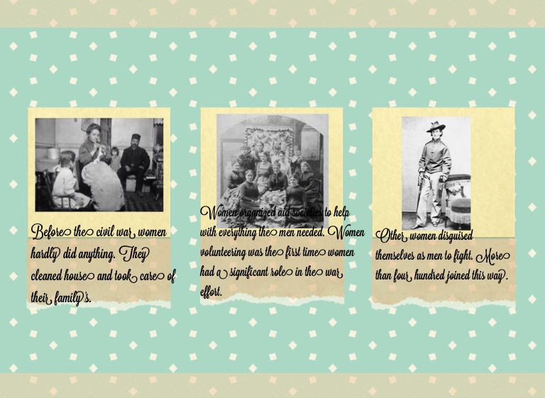 Before the civil war women hardly did anything. They cleaned house and took care of their family's.
