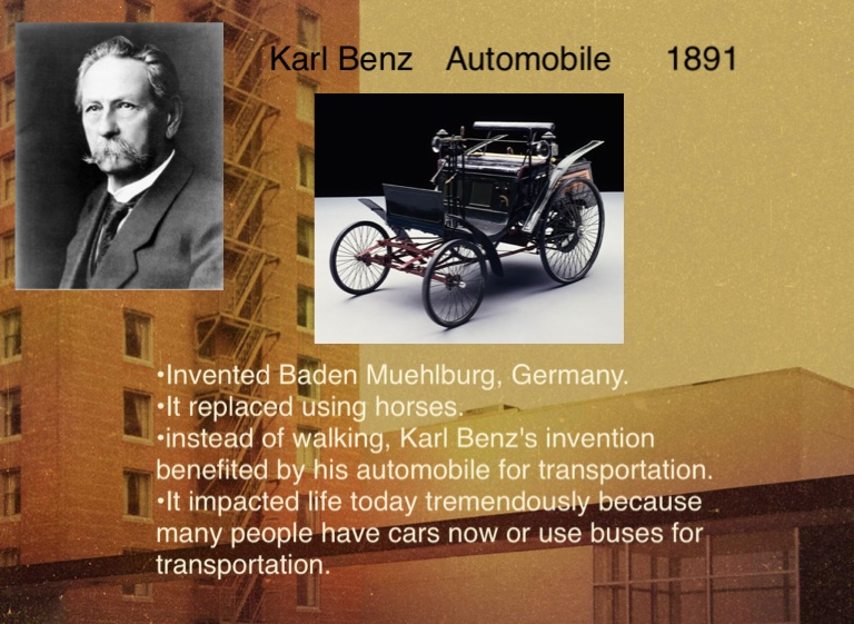•instead of walking, Karl Benz's invention benefited by his automobile for transportation.