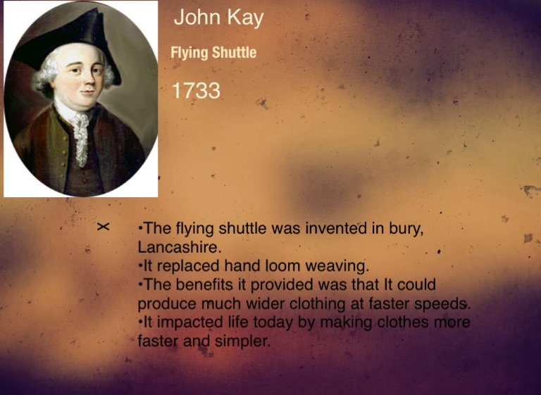 •The flying shuttle was invented in bury, Lancashire.