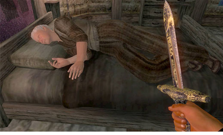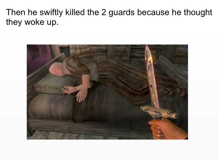 Then he swiftly killed the 2 guards because he thought they woke up.