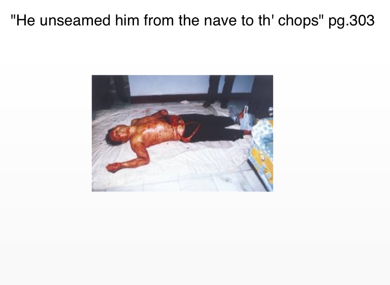 "He unseamed him from the nave to th' chops" pg.303