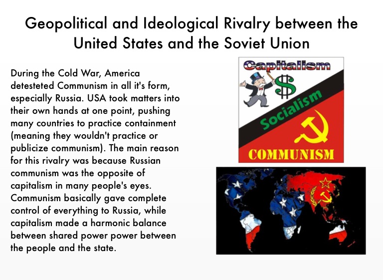 During the Cold War, America detesteted Communism in all it's form, especially Russia. USA took matters into their own hands at one point, pushing many countries to practice containment (meaning they wouldn't practice or publicize communism). The main reason for this rivalry was because Russian communism was the opposite of capitalism in many people's eyes. Communism basically gave complete control of everything to Russia, while capitalism made a harmonic balance between shared power power between the people and the state.