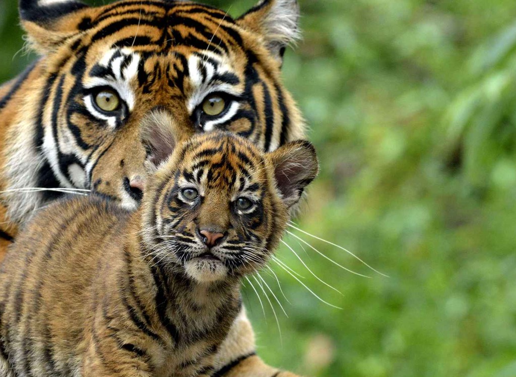 Les tigres n'ont pas de mois de reproduction. Ce qui veut dire que ça peut être l'automne ou l'été. Mais particulièrement le printemps. Les jeunes tigreaux restent aveuglent pendant les 14 premiers jours de leurs vie. Les yeux des tigreaux seront bleu pâle et changeront pour devenir doré vert. Dès la naissance, le poids du tigre sera entre 750g à 1 600g selon l'espèce. La mère apprendra à ses jeunes tigres à chasser environ entre 16 et 18 mois et ils partiront à l'age de trois ans.