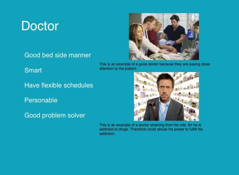 This is an example of a doctor straining from his role, for he is addicted to drugs. Therefore could abuse his power to fulfill his addiction.