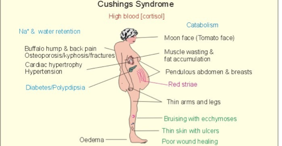 🔸Weight gain with fat accumulation on the trunk, but fat loss on the arms, legs, and buttocks
