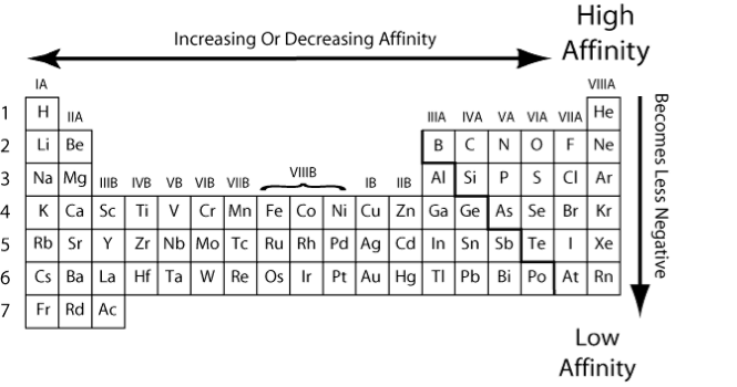 The electron affinity of an atom can be described either as the energy gained by an atom when an electron is added to it, or conversely as the energy required to detach an electron from a singly charged anion. The sign of the electron affinity can be quite confusing, as atoms that become more stable with the addition of an electron (and so are considered to have a higher electron affinity) show a decrease in potential energy; i.e. the energy gained by the atom appears to be negative. For atoms that become less stable upon gaining an electron, potential energy increases, which implies that the atom gains energy.
