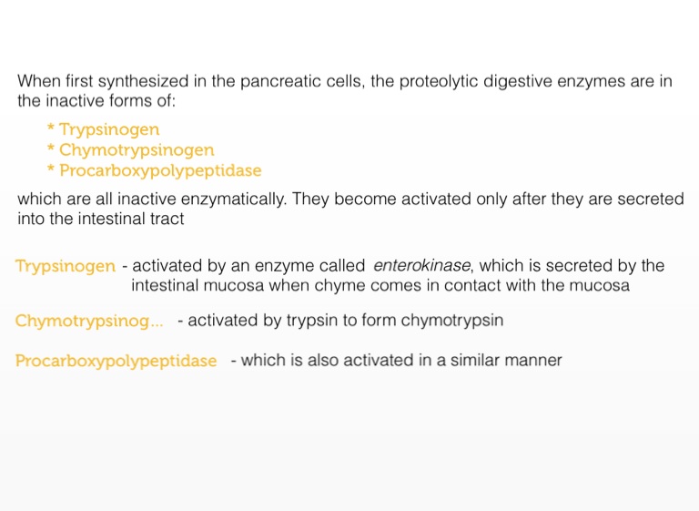 which are all inactive enzymatically. They become activated only after they are secreted into the intestinal tract