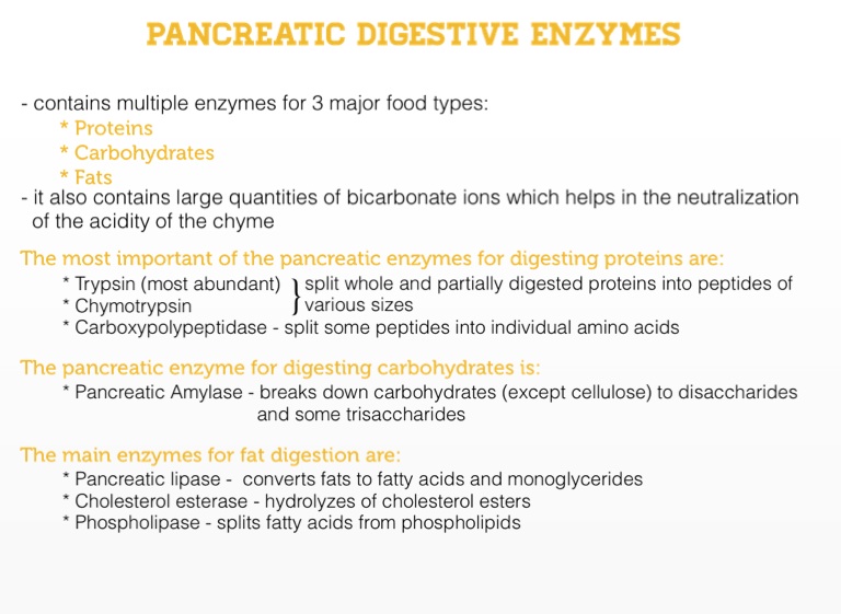 * Pancreatic Amylase - breaks down carbohydrates (except cellulose) to disaccharides