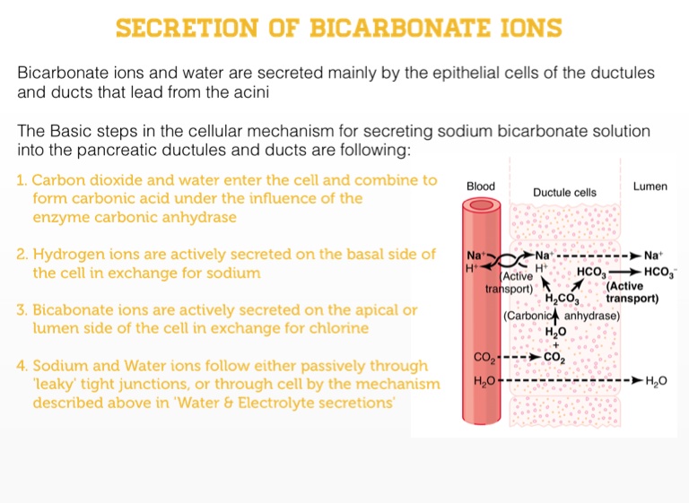 3. Bicabonate ions are actively secreted on the apical or