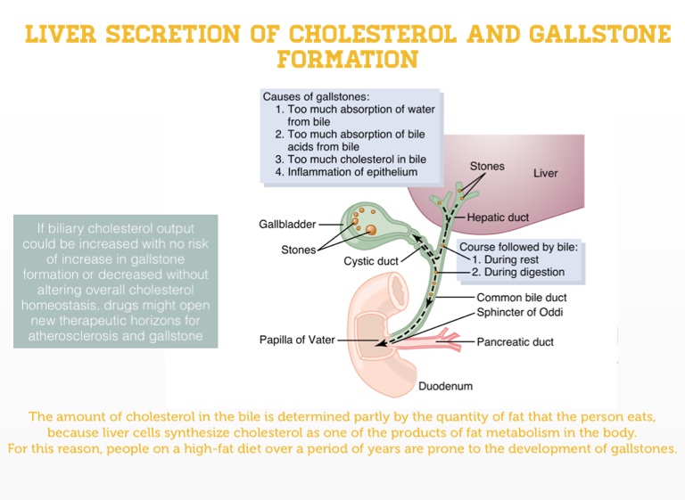 For this reason, people on a high-fat diet over a period of years are prone to the development of gallstones.