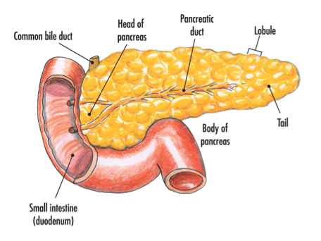 Combined product of enzymes and Sodium Bicarbonate flows through a long pancreatic duct surrounded by the Sphincter of Oddi