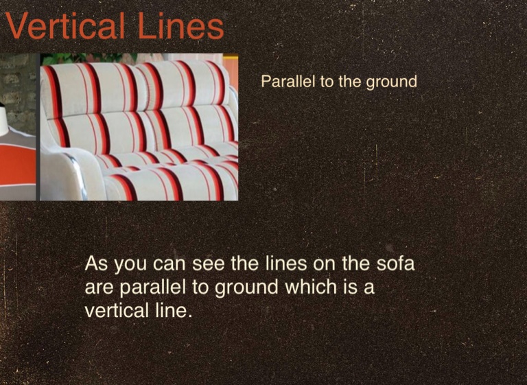 As you can see the lines on the sofa are parallel to ground which is a vertical line.