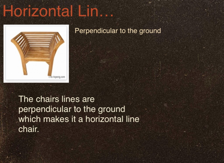 The chairs lines are perpendicular to the ground which makes it a horizontal line chair.
