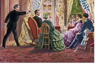 Shortly after 10 p.m. on April 14, 1865, actor John Wilkes Booth entered the presidential box at Ford's Theatre in Washington D.C., and fatally shot President Abraham Lincoln. As Lincoln slumped forward in his seat, Booth leapt onto the stage and escaped through the back door. A doctor in the audience rushed over to examine the paralyzed president. Lincoln was then carried across the street to Petersen's Boarding House, where he died early the next morning.