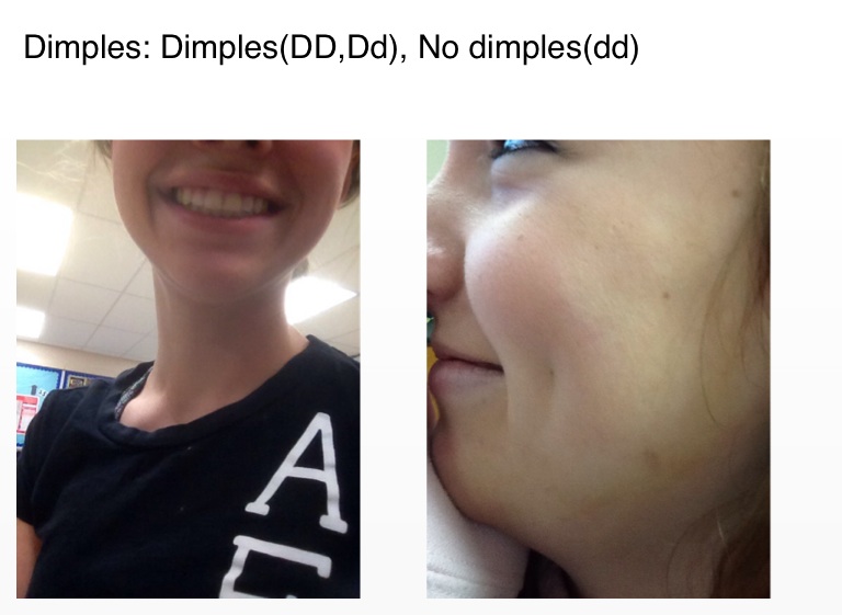 Dimples: Dimples(DD,Dd), No dimples(dd)