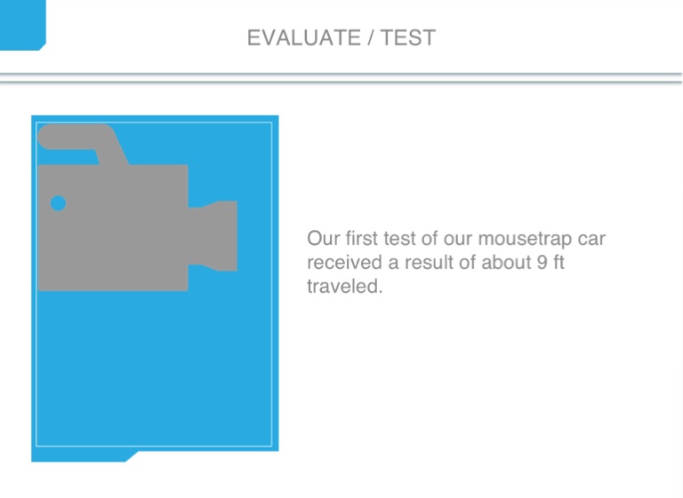 Our first test of our mousetrap car received a result of about 9 ft traveled.