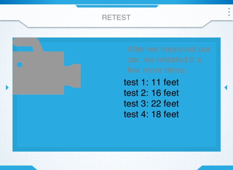 test 1: 11 feet test 2: 16 feet test 3: 22 feet test 4: 18 feet